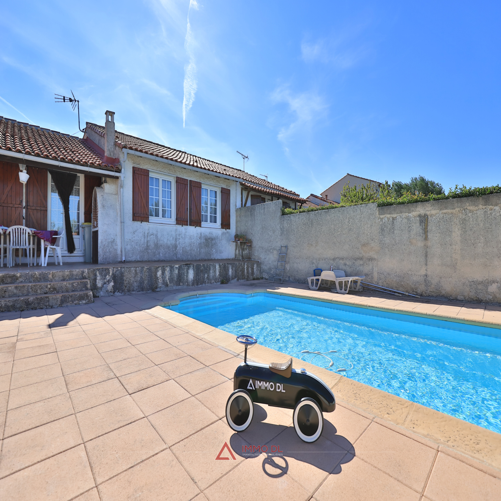 Dans la commune des Pennes-Mirabeau, dans un secteur très recherché pour sa proximité avec les commerces, écoles, arrêts de bus. Nicolas de l'Agence Immo Dl Transactions, 19 Quai de la Joliette 13002 - LA BOITE IMMO - 1ère agence d'indépendant avec 7000 membres dans le réseau, AVEC PLUS DE 1100 ANNONCES IMMOBILIÈRES sur MARSEILLE et alentours, vous présente : Cette maison d'une surface habitable de 73m² sur un terrain de 552m² avec un double accès, se compose : D'une entrée, un coin salon de 18m² doté d'une cheminée avec insert, une cuisine, un espace nuit comprenant 3 chambres, une salle de bain et un wc indépendant. A l'extérieur vous trouverez un jardin privatif agréable avec plusieurs cabanons ainsi qu'une piscine de 9x4 en coque et garage de 16m².